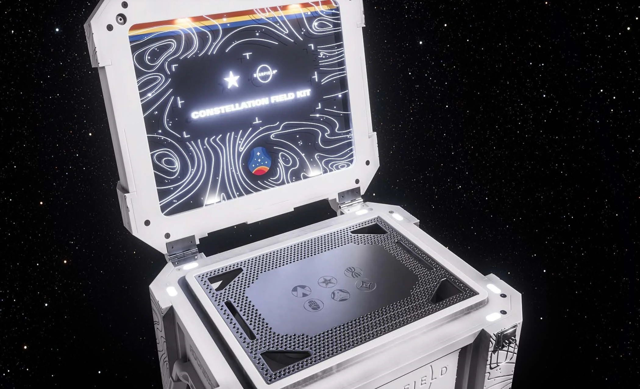 Rockstar released special cans featuring Starfield branding, promoting sweepstakes and codes for in-game rewards and other prizes. Along with the design of the cans, unique kits were created to help with the launch of limited edition release.